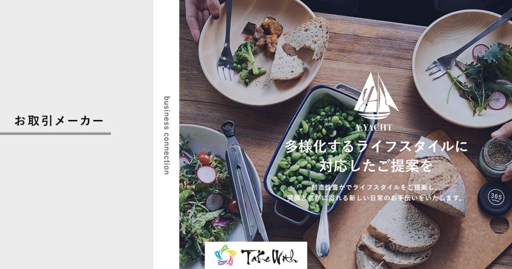 2023年7月11日 / 最終更新日時 : 2023年12月1日 takewith 取引会社 株式会社ワイ・ヨットのアイテムを取り扱い開始いたしました。 キッチン・ダイニング用品を中心に、「上質で価値ある暮らし」「彩りある日常」を提案する株式会社ワイ・ヨット様と取引を開始いたしました。 株式会社TaKe Withは、身近な空間をより楽しく癒やしのある時間や空間にするアイテムを提案してまいります。 Follow me! FacebookXBlueskyHatenaCopy